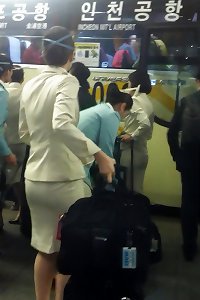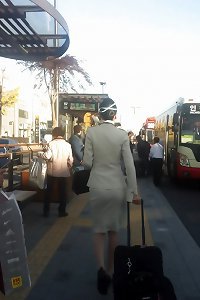 asian air hostess in public